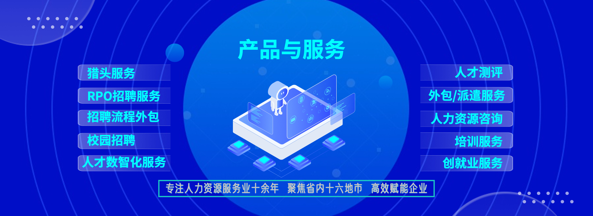 一站式服務(wù),降低企業(yè)管理成本 事務(wù)外包:人事事務(wù)外包,實(shí)習(xí)生招聘與管理外包 崗位外包:IT技術(shù)、財(cái)務(wù)/會計(jì)、行政文秘類和市場類崗位 項(xiàng)目外包:校園招聘外包、招聘流程外包、社交媒體運(yùn)維外包、設(shè)計(jì)創(chuàng)意外包 業(yè)務(wù)流程外包:物業(yè)管理項(xiàng)目外包、零售快消行業(yè)的營銷服 務(wù)外包、倉儲物流業(yè)的倉儲與配送外包、O2O地推營銷外包、 呼叫中心外包等